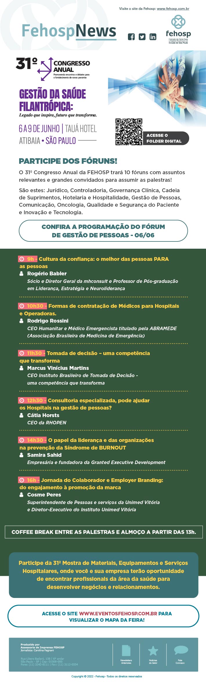 A FEHOSP CONVIDA A TODOS PARA PARTICIPAREM DO SEU 34º CONGRESSO