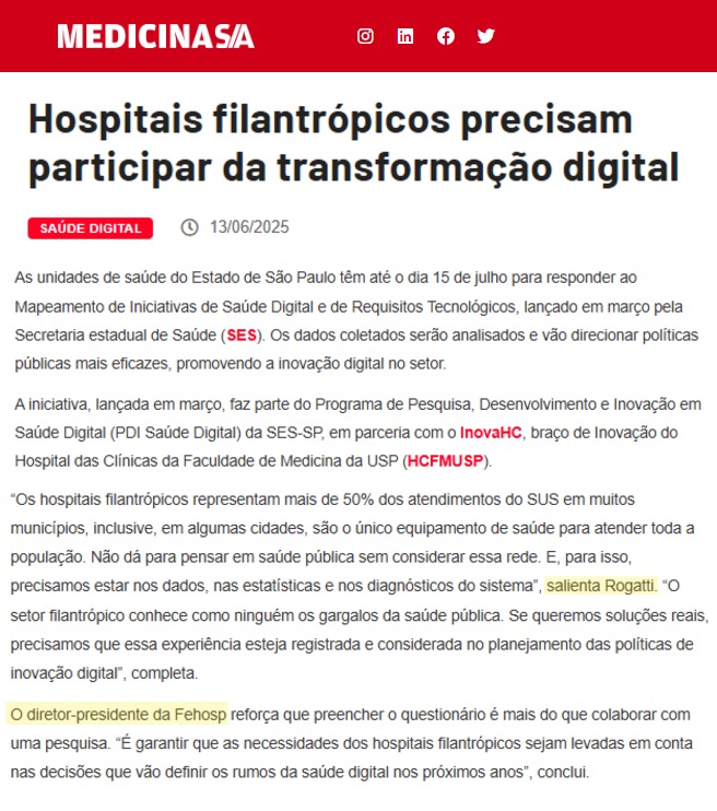 Inteligência Técnica Hospitalar: novo projeto da Fehosp amplia apoio aos associados