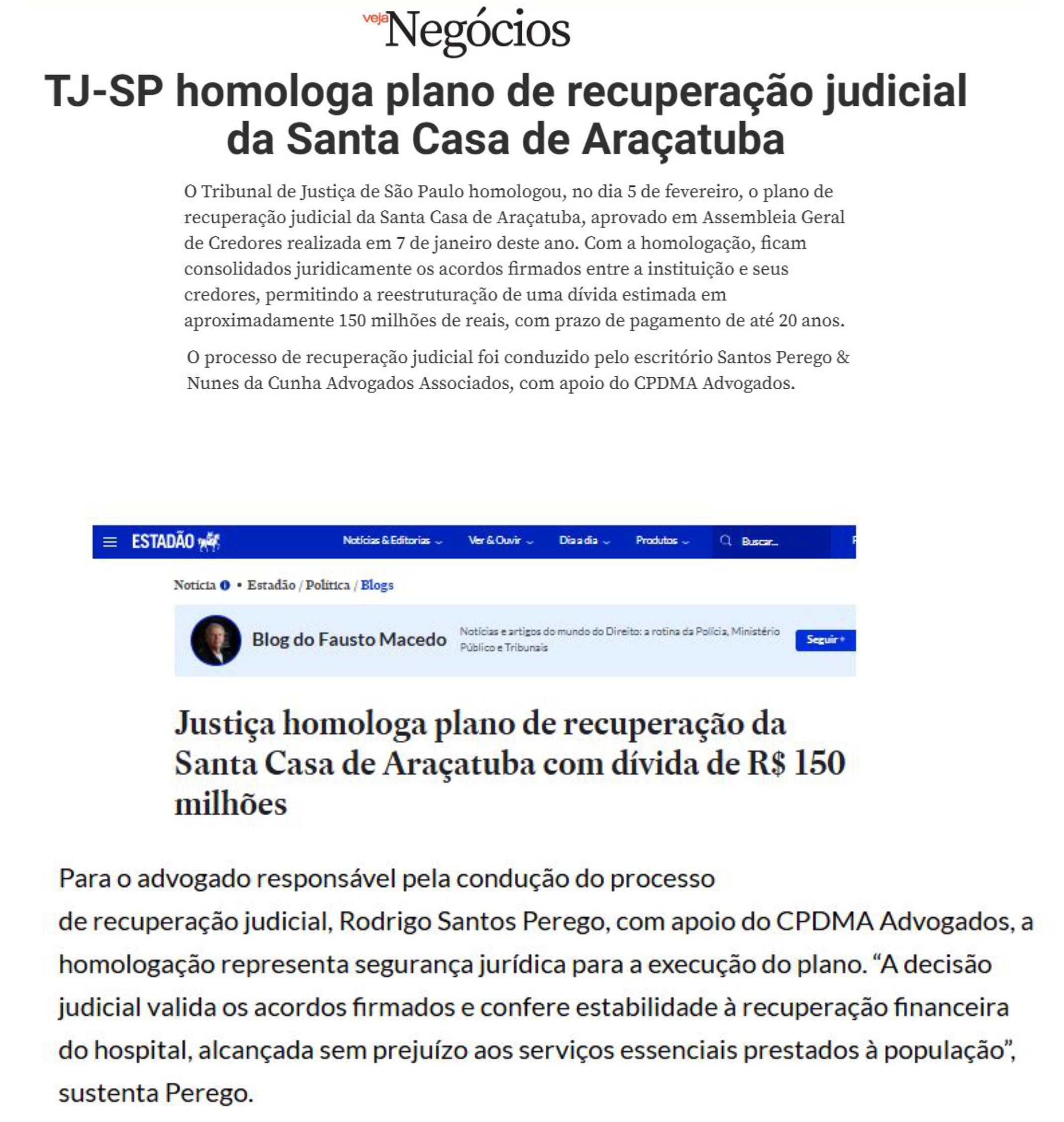 Fehosp é destaque nos portais Estadão e VEJA NEGÓCIOS