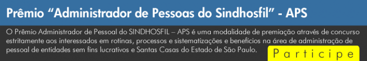 O Sindicato das Santas Casas de São Paulo (SINDHOSFIL) realiza o prêmio Administrador de Pessoas do Sindhosfil - APS, que vai oferecer 4.500 reais para projetos inovadores criados por membros do Sindicato na área de Gestão de Pessoas. As inscrições já estão abertas e vão até o dia 1º de agosto. Os interessados devem encaminhar o projeto para o e-mail do SINDHOSFIL (secretaria@sindhosfil.com.br).