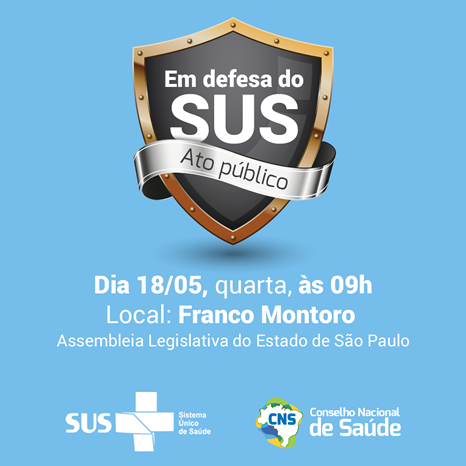 O ato ocorrerá no auditório Franco Montoro, às 9h, e contará com a presença de deputados estaduais e federais e também de diversos setores que defendem a saúde pública e gratuita de qualidade. “O subfinanciamento que ocorre hoje no SUS é uma grande ameaça à sua existência. O SUS é democrático e atende milhões de pessoas. Sem recursos e estrutura, logo vão defender a terceirização da saúde pública. E isso representaria a falência do nosso sistema”, opina Ronald Santos, presidente do CNS.