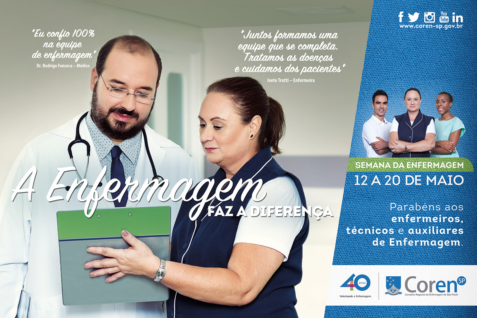 Sob o mote “A Enfermagem faz a diferença”, o Conselho Regional de Enfermagem de São Paulo (Coren-SP) acaba de lançar uma forte campanha de valorização da classe. A meta é dar destaque, chamar a atenção dos pacientes para a relevância dos serviços profissionais de enfermeiros, técnicos e auxiliares de enfermagem.