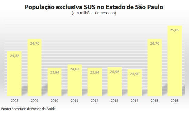 Antes de 2008, a estimativa de dependentes feita pela Secretaria de Estado da Saúde apontou sempre para um número próximo a 25 milhões de usuários exclusivos dos serviços públicos de saúde nos municípios paulistas.