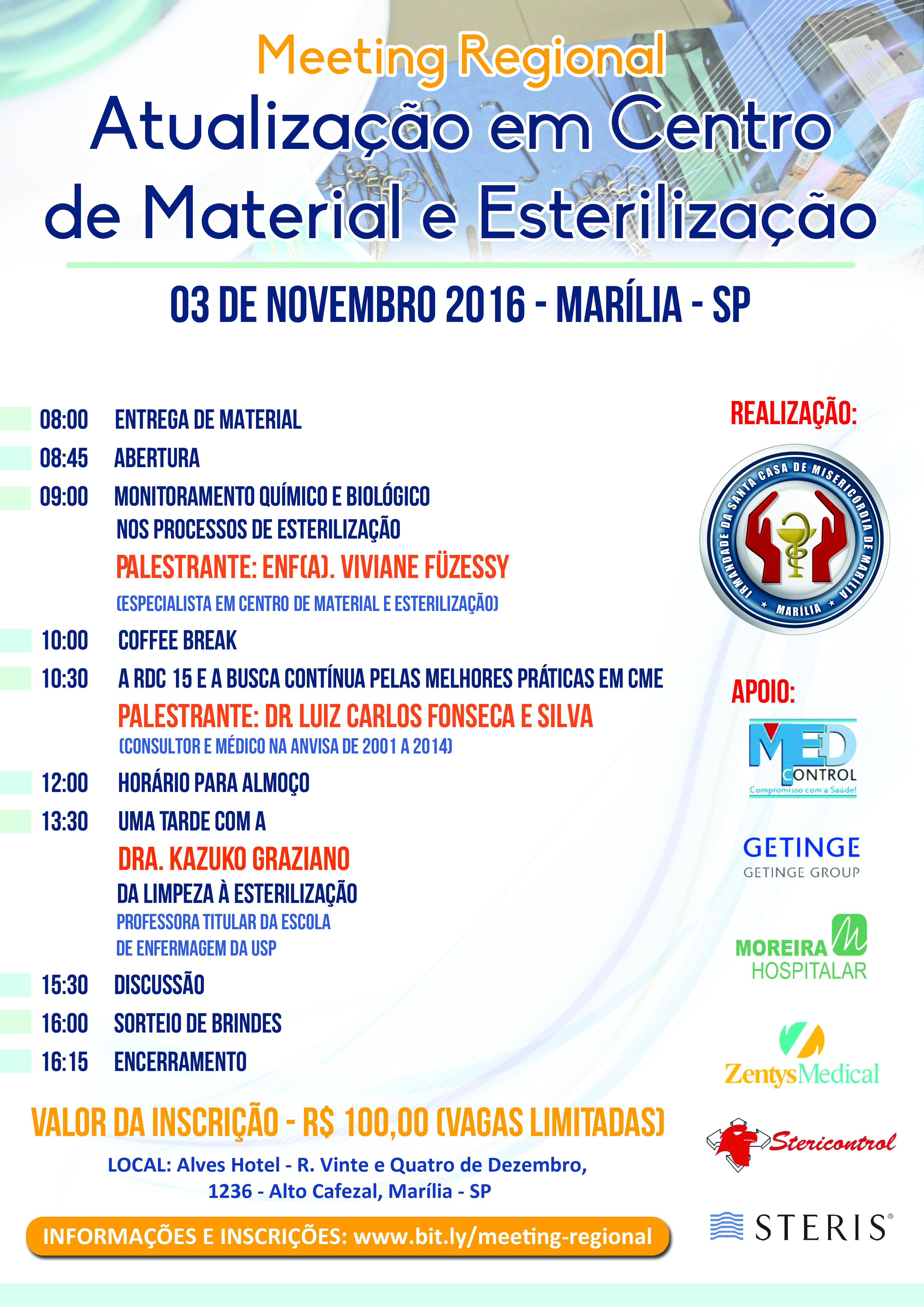 A SANTA CASA DE MARÍLIA NO PRÓXIMO DIA 03/11 REALIZARÁ O MEETING REGIONAL DE CENTRO DE MATERIAL E ESTERILIZAÇÃO