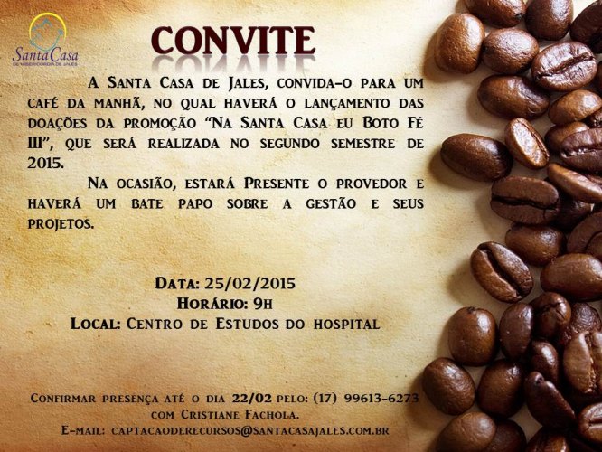 A campanha “Na Santa Casa eu Boto Fé III” já está sendo preparada pelo setor de Captação de Recursos do hospital, que desde a última semana de janeiro está entrando em contato com os doadores do ano passado.