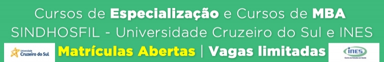 O SINDHOSFIL/SP fechou parceria com o Centro de Estudos em Saúde – INES e com a Universidade Cruzeiro do Sul para a criação de cursos de Especialização e MBA de gestão hospitalar e auditoria de serviços.