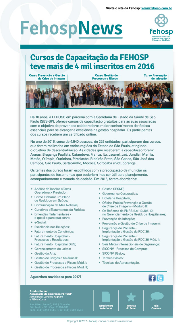 CURSOS DE CAPACITAÇÃO DA FEHOSP TEVE MAIS DE 4 MIL INSCRITOS EM 2016!