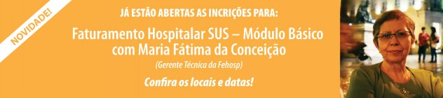 Inscrições abertas para o curso de Faturamento Hospitalar SUS com Maria Fátima da Conceição