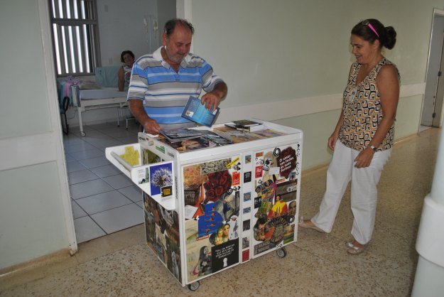 O primeiro dia de funcionamento da Hospitoteca nesta segunda fase do projeto foi um sucesso. A maioria dos pacientes e acompanhantes tomou emprestado algum livro ou revista da biblioteca móvel e elogiou a iniciativa. “Que bom ter revistas e livros para ler enquanto estamos aqui. Assim o tempo passa mais depressa”, disse o acompanhante de uma paciente que está internada há 7 dias e deverá ficar por mais 7. Ele também emprestou um livro para a filha, que passa as noites com mãe no hospital.