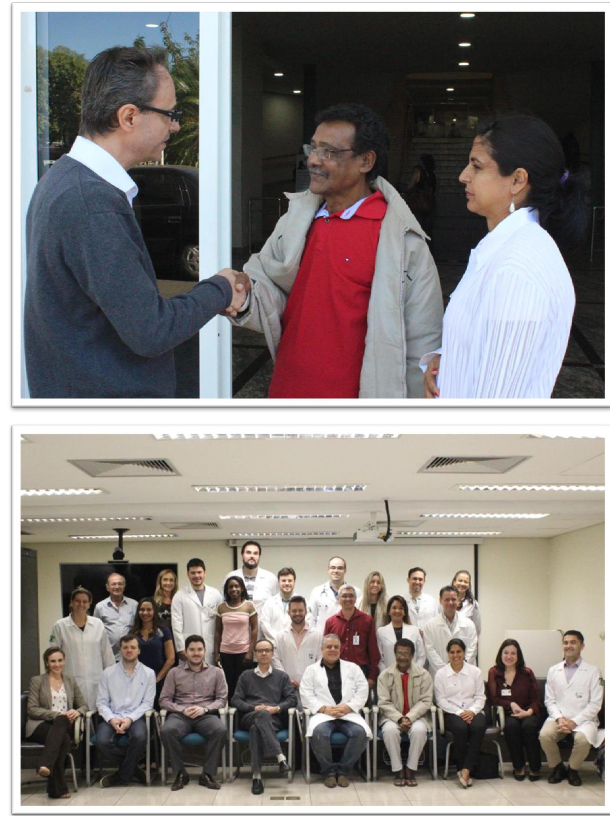 Diretores e profissionais do HB envolvidos no transplante e na recuperação pós-cirúrgica fizeram questão de encontrar-se com o paciente momentos antes de sua alta. “Ver o senhor Divino voltando para sua família é a recompensa pelo trabalho e dedicação de todos os profissionais envolvidos e pelo empenho das diretorias da Funfarme e Hospital de Base para que o Serviço fosse reativado em benefício de toda a população”, diz a Dra. Amália Tieco, diretora administrativa do HB.
