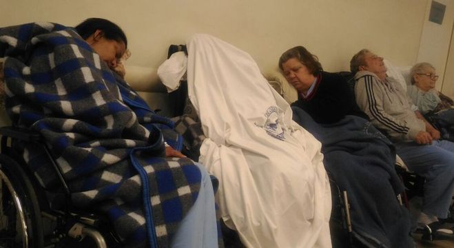 Superlotado, o pronto-socorro do Instituto Dante Pazzanese, hospital do governo do Estado referência em cardiologia, tem pacientes aguardando na sala de espera por procedimento médico há dois dias. Sem bancos suficientes, parte dos pacientes — na maioria, idosos — tem de aguardar em pé ou sentados no chão.