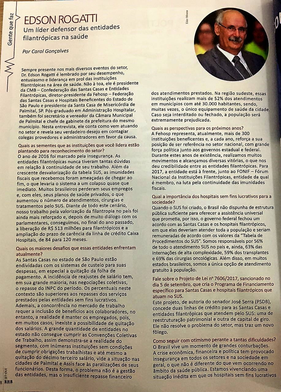 EDSON ROGATTI CONCEDE ENTREVISTA À REVISTA HOSPITAIS BRASIL