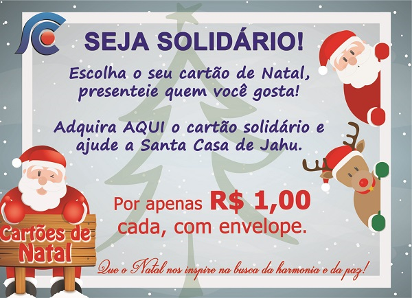 A Santa Casa de Jahu teve a iniciativa de realizar nesse ano mais uma campanha do Cartão de Natal Solidário, para ajudar a entidade a melhorar os serviços prestados à população. Cada cartão, com envelope, será vendido no valor de R$ 1,00. Toda a renda arrecadada será revertida para o hospital.