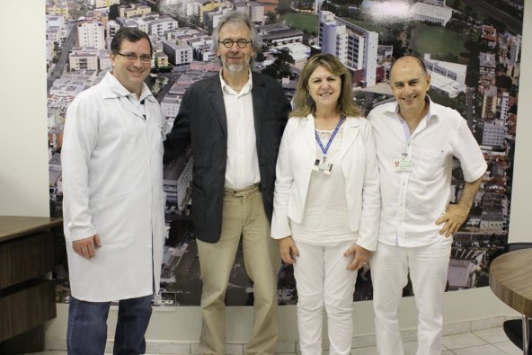A Funfarme recebeu, nesta quarta-feira, 18 de março, a visita do Professor e Dr. Henk Busscher, da Faculdade de Medicina de Groningen, da Holanda. Conceituado pesquisador da área microbiológica, Henk veio ao Brasil participar, no último dia 17 de março, do 1º Simpósio Internacional de Microbiologia da Famerp, e fez questão de conhecer o complexo hospitalar Funfarme, quando foi recebido pelo Vice-Diretor Executivo, Dr. José Luis Esteves, Diretor Administrativo do Hospital de Base, Dr. Jorge Fares e a Dra. Margarete de Almeida, do Departamento de Microbiologia da Famerp.