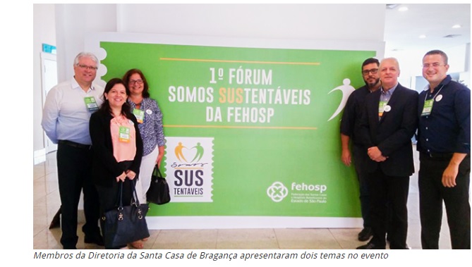 Na segunda-feira, 12, membros da diretoria da Santa Casa de Bragança participaram do 1º Fórum Somos SUStentáveis da FEHOSP (Federação das Santas Casas e Hospitais do Estado de São Paulo), realizado no Centro de Convenções Rebouças, na cidade de São Paulo, com a presença de mais de 1.000 participantes. O evento teve como objetivo divulgar a evolução do Programa do Governo Estadual, Santa Casas Sustentáveis, bem como mostrar os avanços de gestão e demonstrar a importância da sua continuidade.