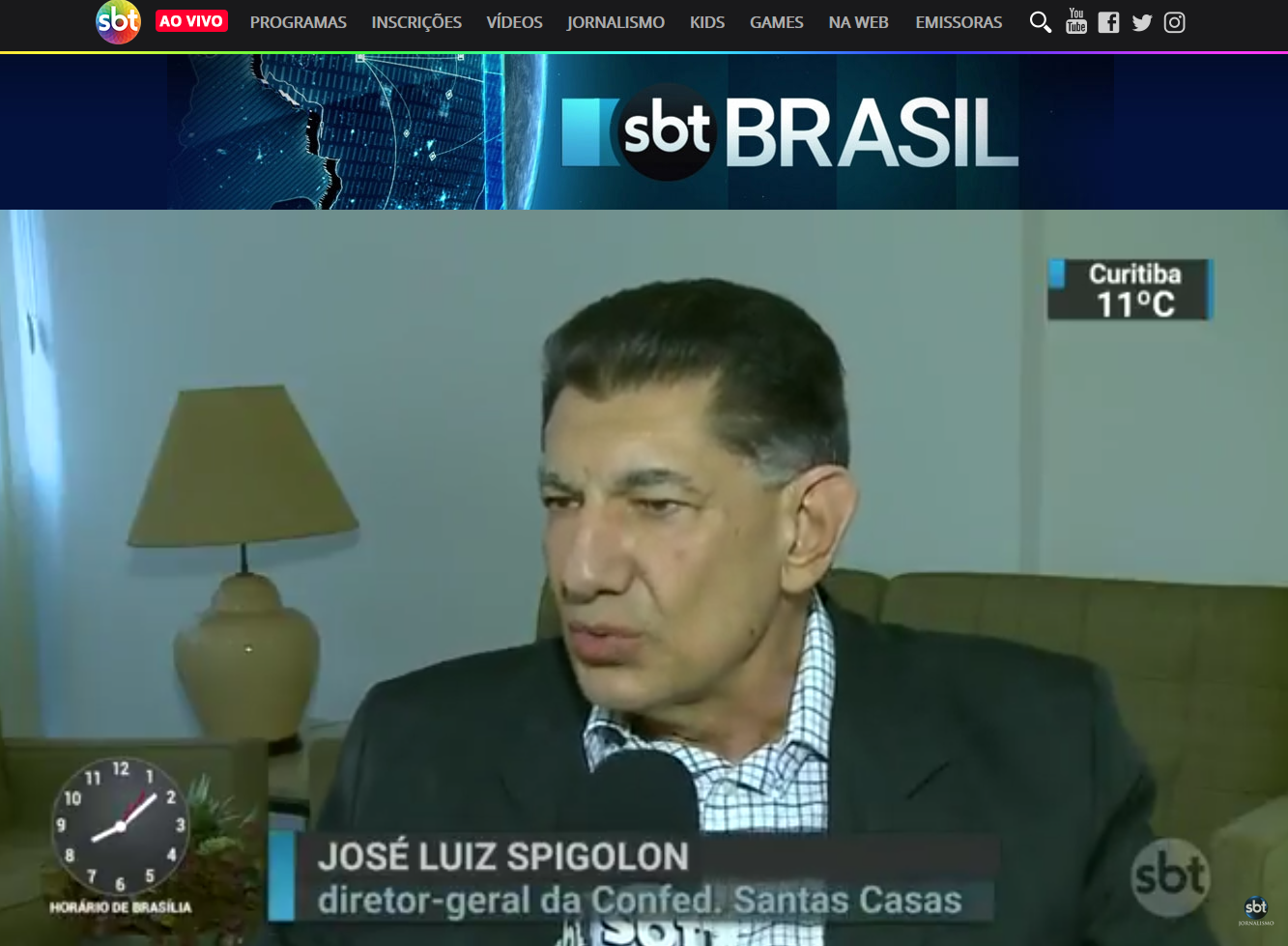 O diretor-geral da CMB, José Luiz Spigolon, concedeu entrevista ao jornal SBT Brasil, abordando a Medida Provisória assinada pelo presidente Michel Temer durante o 28º Congresso Nacional das Santas Casas e Hospitais Filantrópicos, que autoriza o uso de recursos do FGTS para a criação de uma linha de crédito com juros menores para os hospitais sem fins lucrativos que atendem o SUS.