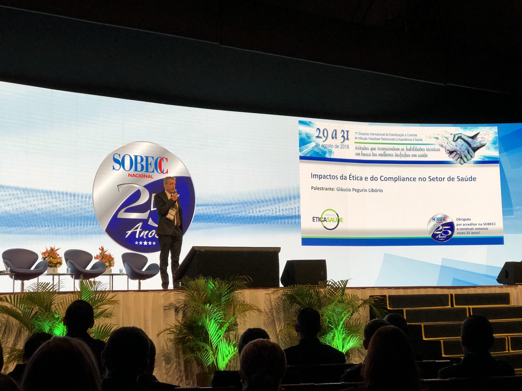 “Os impactos positivos da Ética e Compliance no setor de Saúde” foi o tema de abertura do 11º Edição do Simpósio Internacional de Esterilização e Controle de Infecção Relacionado à Assistência à Saúde, organizado e promovido pela Associação Brasileira de Enfermeiros de Centro Cirúrgico, Recuperação Anestésica e Centro de Material e Esterilização - SOBECC, em São Paulo, entre os dias 29 e 31 de agosto. Convidado para proferir a palestra, o presidente do Conselho de Administração do Instituto Ética Saúde, Gláucio Pegurin Libório, destacou os importância da transparência nas condutas, entre todos os atores do setor. “A maioria dos hospitais renomados no país, não coincidentemente, possui uma enfermagem forte. Vocês enfermeiros têm um papel muito importante na melhoria deste sistema”.