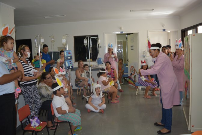 A confraternização organizada pelos grupos de Humanização e Voluntários do hospital teve o objetivo de proporcionar um ambiente mais acolhedor e descontraído. “A festa é uma forma de amenizar esse período difícil de internação, oferecendo um momento especial para as crianças”, frisou coordenadora de Humanização, Rosimeire de Oliveira. A diversão foi garantida com a participação de um coelho da Páscoa, além das contadoras de história do Centro Cultural Matarazzo e alunas voluntárias de uma faculdade. “Estou com minha filha há mais de um mês aqui no hospital, estou emocionada com a felicidade dela nesta festa”, afirmou a dona de casa Sueli da Silva Batista que acompanha a filha Maria Vitória de 5 anos. A assistente financeira, Cláudia Roberta Azedo também aprovou a ação. “Achei ótimo, meu filho se divertiu, a festinha trouxe um pouco de alegria para todos”, falou Cláudia.