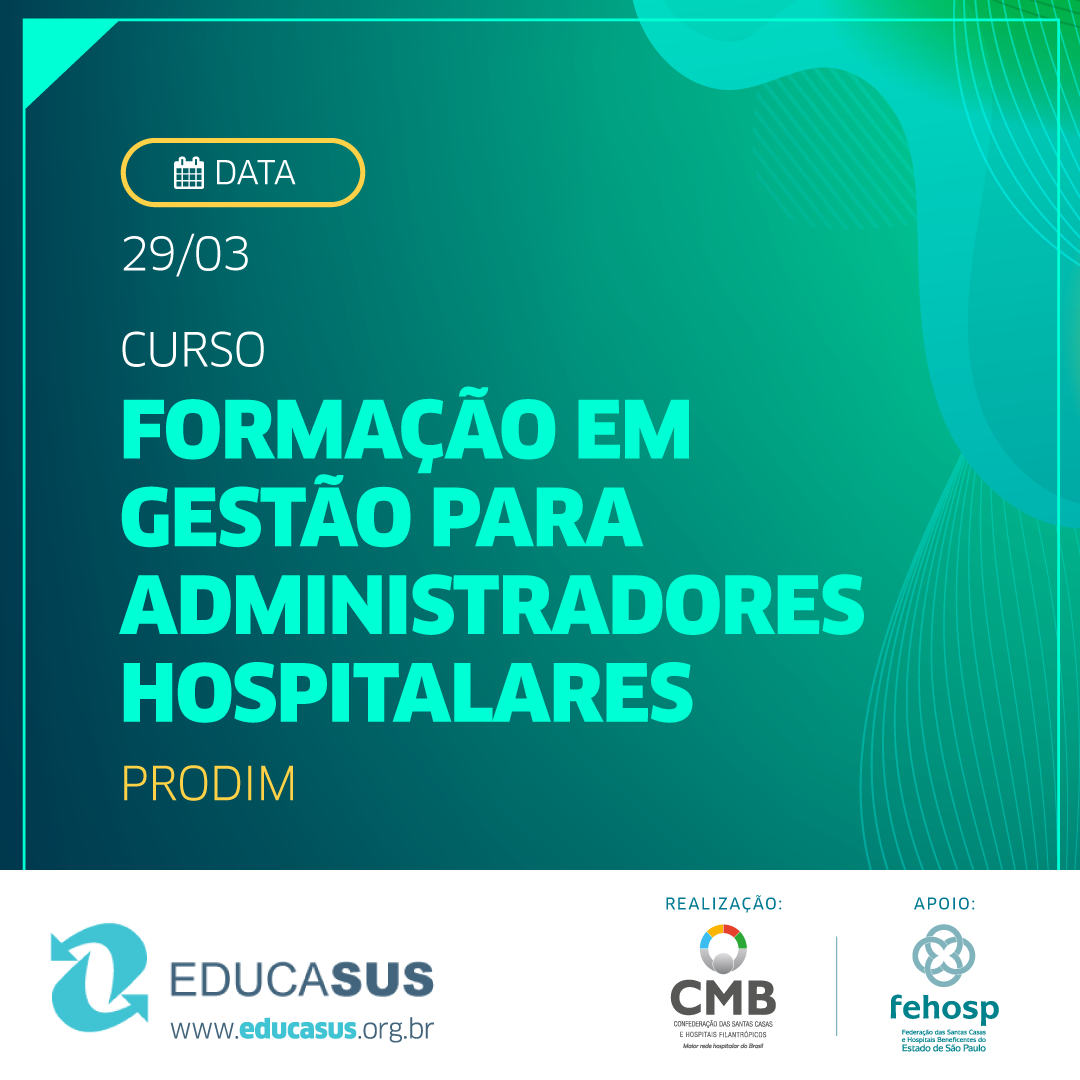 As instituições beneficiadas pelo Telemedicina/Educasus e seus profissionais interessados em participar dos cursos ofertados já podem começar a se preparar para mais um curso inédito do programa. A CMB abre, no próximo dia 18, as inscrições para o Curso Formação em Gestão para Administradores Hospitalares - PRODIM, já com data confirmada para iniciar, em modo presencial, no dia 29 de março, em São Paulo. As demais aulas do curso, que contempla a apresentação de vários módulos, serão ministradas em EAD, por meio de videoconferência, através dos pontos do Telemedicina/Educações. São 80 vagas no total, divididas em duas turmas iguais de 40 alunos cada.