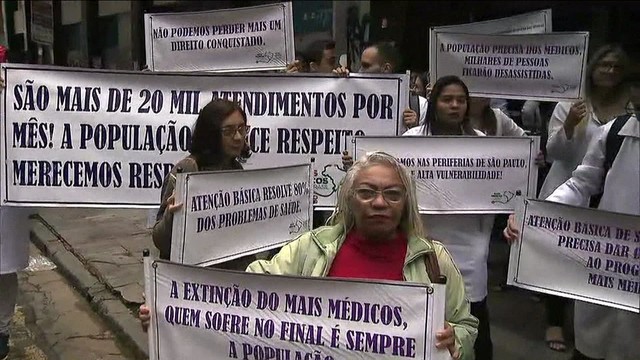 MÉDICOS FAZEM PROTESTO NA REGIÃO CENTRAL DE SP POR FALTA DE RENOVAÇÃO DE CONTRATOS DO PROGRAMA MAIS MÉDICOS