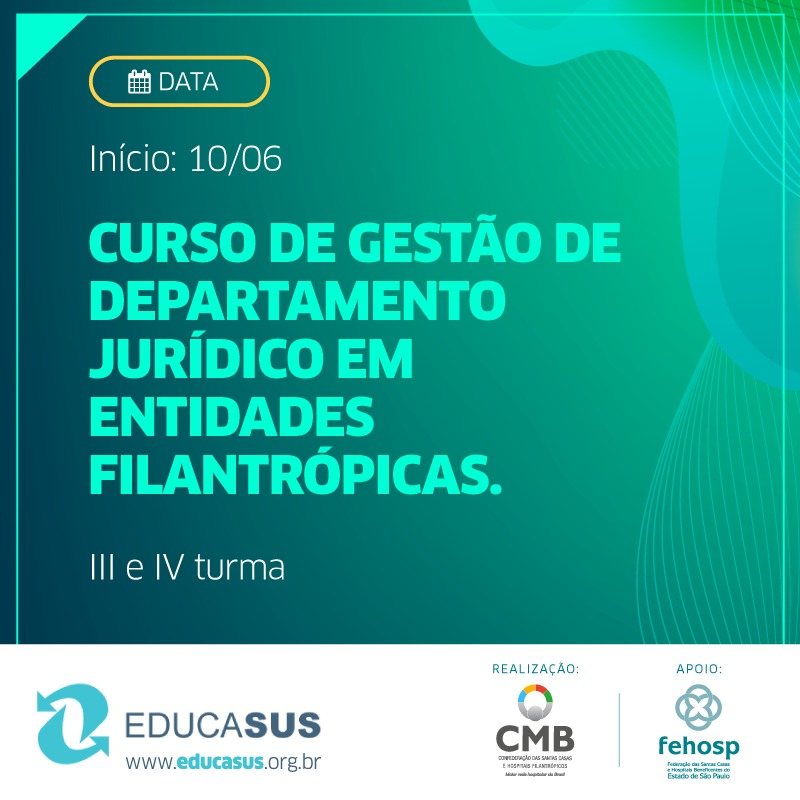 TELEMEDICINA/EDUCASUS: III E IV TURMA DO CURSO DE GESTÃO DE DEPARTAMENTO JURÍDICO EM ENTIDADES FILANTRÓPICAS.