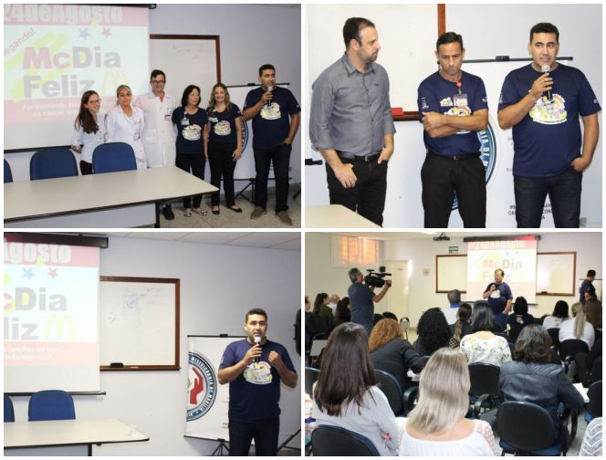 Workshop realizado na manhã deste dia 24 de junho, no salão de reuniões da Santa Casa de Misericórdia de Marília, apresentou o McDia Feliz 2019 aos parceiros da campanha. A meta deste ano é a arrecadação de R$ 220.000,00 com a venda de 10.000 tíquetes do sanduíche Big Mac e de 4.000 camisetas, além de doações espontâneas. Os recursos vão ser empregados na implantação do Programa Diagnóstico Precoce Salva Vidas, com a capacitação de profissionais de unidades de saúde do município para o encaminhamento de crianças da rede básica para diagnóstico e tratamento do câncer.