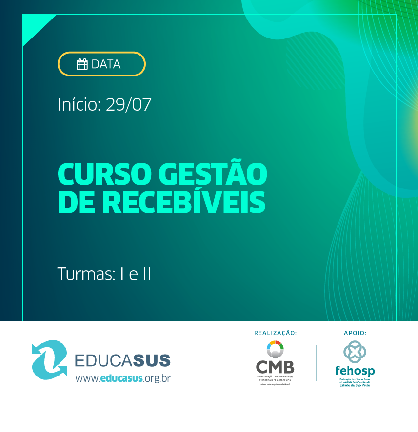 A Confederação das Santas Casas de Misericórdia, Hospitais e Entidades Filantrópicas (CMB), abre, na próxima sexta-feira, 19 de julho, as inscrições para mais um curso do Programa Telemedicina/Educasus. Trata-se do Curso de Gestão de Recebíveis, que tem como objetivo oferecer uma oportunidade de aprimoramento profissional, para desenvolvimento de competências e habilidades para melhorias na gestão dos processos de faturamento.