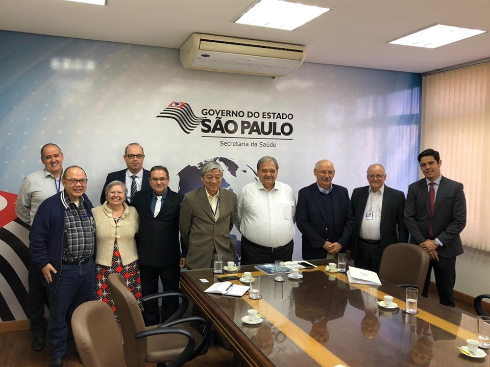 O diretor presidente da Fehosp, Edson Rogatti e a Comissão dos Hospitais SUStentaveis composta por Maria Fatima da Conceição, Thiago Silva e Rogério Bartkevicius foram recebidos, na tarde de quarta-feira (21), pelo Secretário de Estado da Saúde, José Henrique Germann Ferreira, acompanhado da equipe: Alberto Nakamura, secretário adjunto, Osmar Mikio moriwaki, coordenadoria da CRS e Eloiso Vieira assunção filho, coordenador da CGOF -coordenadoria de gestão orçamentária e finança a da SES.