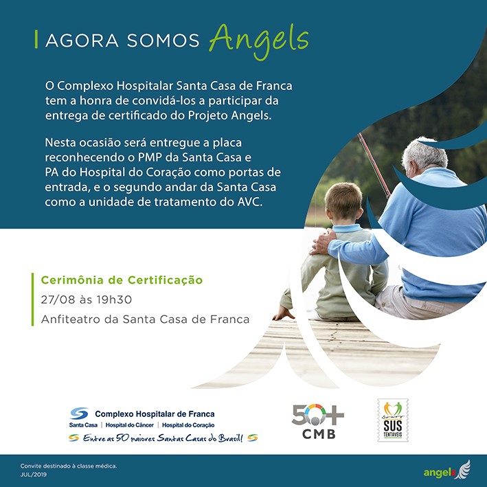 No próximo dia 27 de agosto, terça-feira, às 19h30, no Anfiteatro da Santa Casa de Franca, haverá uma cerimônia oficial de entrega de certificados do Projeto Angels, que capacitou os profissionais do Complexo Hospitalar para realizarem o atendimento de urgência aos pacientes com AVC.