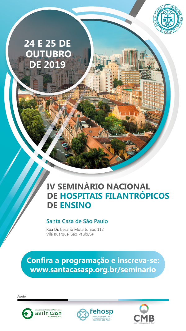 A SANTA CASA DE SÃO PAULO sediará o IVº SEMINÁRIO NACIONAL DOS HOSPITAIS FILANTRÓPICOS DE ENSINO, nos dias 24 e 25 de outubro.