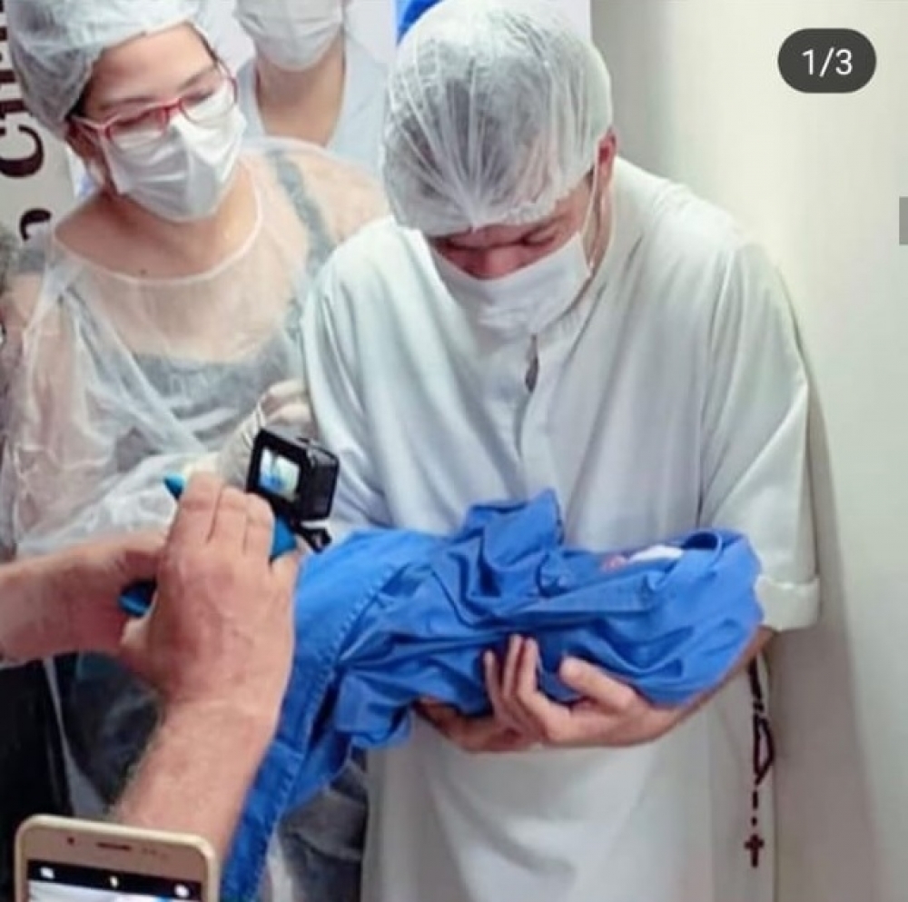 A mãe entrou em trabalho de parto ontem (24) por volta das 9h e, vendo que não daria para esperar mais tempo, os médicos deram início ao processo às 12h.