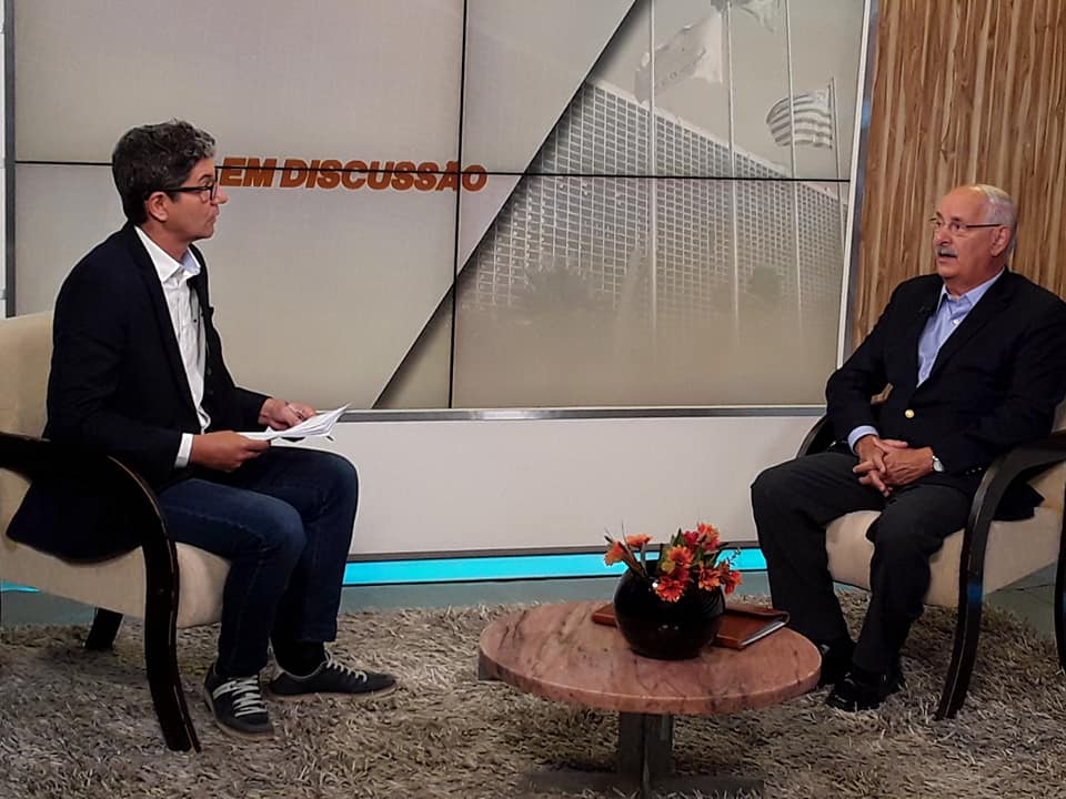 O DIRETOR-PRESIDENTE DA FEHOSP, EDSON ROGATTI, GRAVA ENTREVISTA PARA O PROGRAMA EM DISCUSSÃO, DA TV ALESP