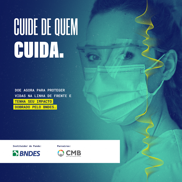 Nesta ação, empresas e sociedade civil são convidadas a doarem determinada quantia em prol das instituições filantrópicas de saúde e cada real investido será dobrado pelo BNDES. A meta é atingir R$ 100 milhões que serão destinados para a compra de materiais de proteção individual para profissionais de saúde, ventiladores pulmonares, monitores de sinais vitais, camas, lençóis e demais itens necessários à internação.