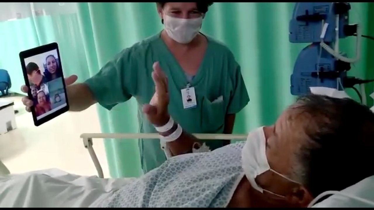 Para Bruno de Oliveira, que foi diagnosticado com coronavírus, é um alívio poder manter o contato com a família, nem que seja por meio da internet. Bruno recebeu alta nesta quinta-feira (7) e também foi homenageado pela equipe do hospital.