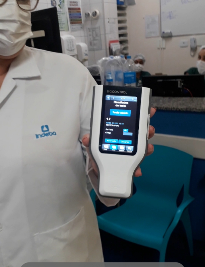 Na oportunidade, a gerente nacional de operações da Indeba, Fernanda Cristina Cerri, constatou a eficácia no uso do desinfetante Quaternário de Amônia na limpeza de superfícies horizontais e verticais da unidade hospitalar.