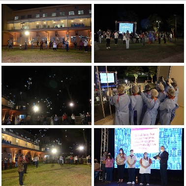 A homenagem, que contou com telão, foi assistida pelos profissionais de dentro da Ala de isolamento, através das altas janelas. “A vibração contagiou a todos, sentimos na pele a presença de Deus naquele momento e ali nós tivemos a certeza de que não estamos sozinhos”, finalizou a diretoria de Saúde e Assistência Social da Fundação Padre Albino, Renata Rocha Bugatti.