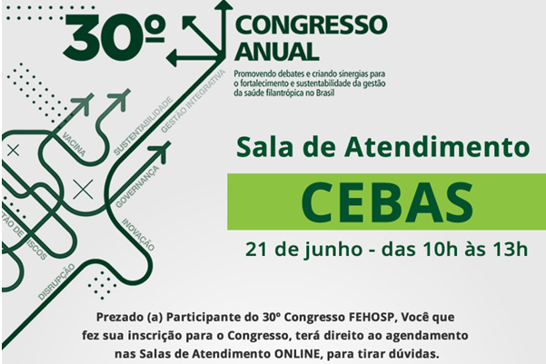 INSCRITOS NO 30º CONGRESSO PODERÃO PARTICIPAR DA SALA ATENDIMENTO CEBAS