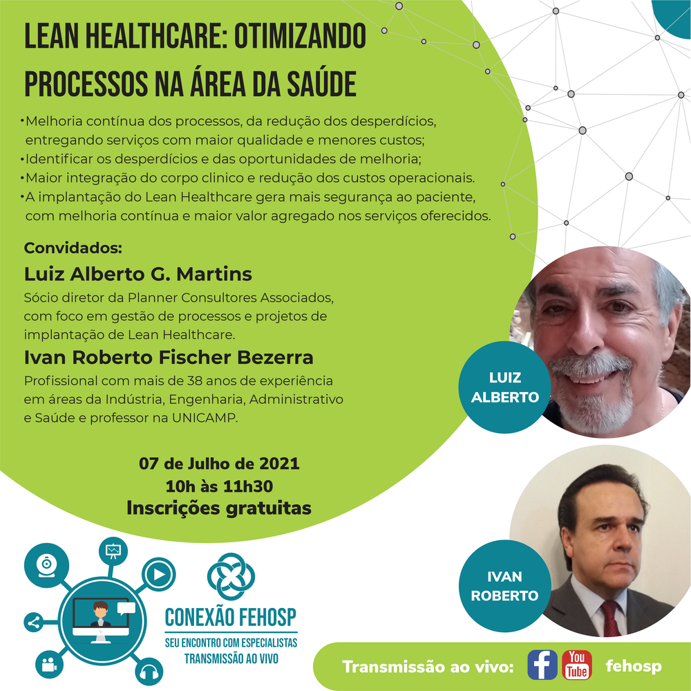 Marcarão presença Luiz Alberto G. Martins (sócio-diretor da Planner Consultores Associados, com foco em gestão de processos e projetos de implantação de Lean Healthcare) e Ivan Roberto Fischer Bezerra (profissional com mais de 38 anos de experiência em áreas da Indústria, Engenharia, Administrativo e Saúde e professor na UNICAMP)