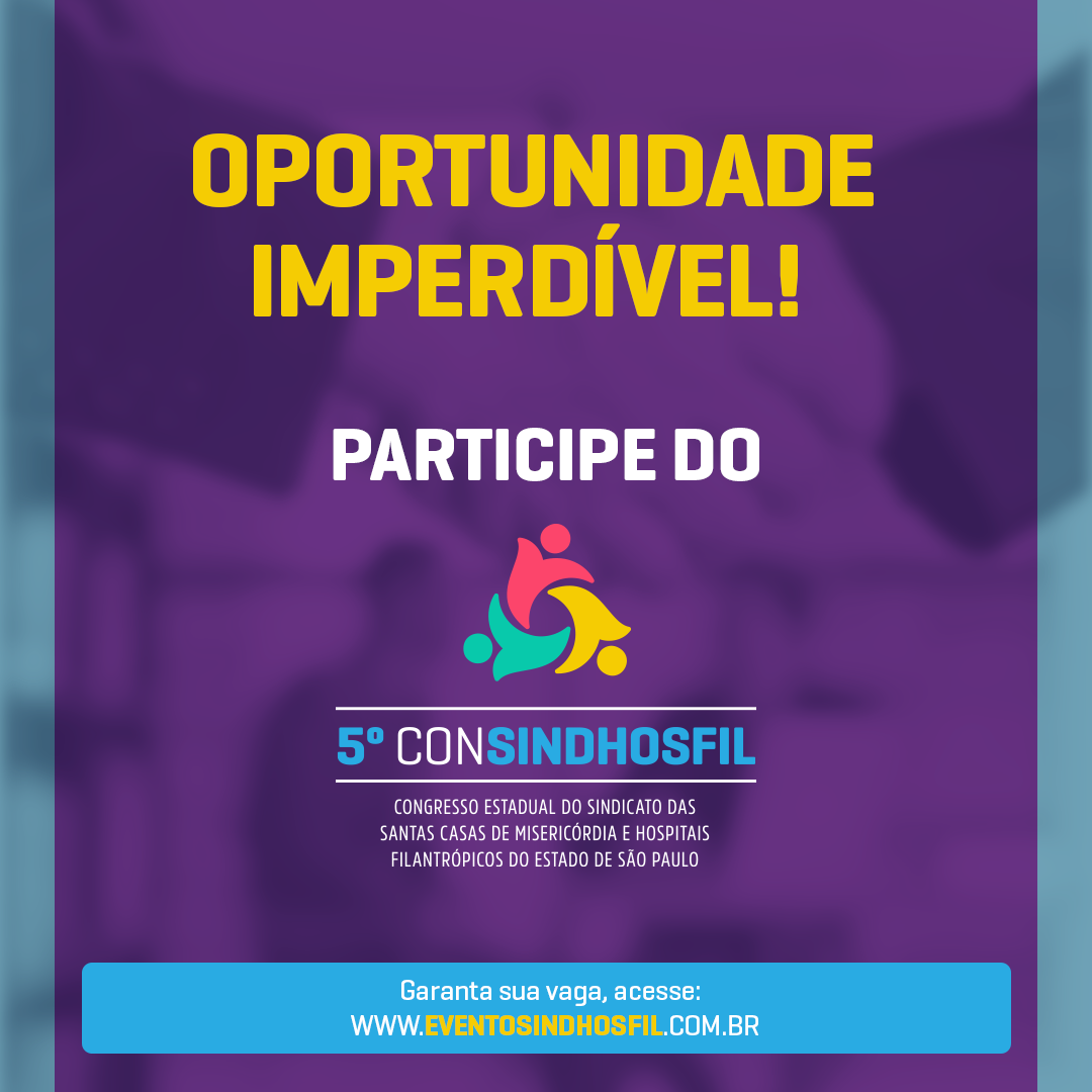 O Congresso Estadual do Sindicato das Santas Casas de Misericórdia e Hospitais Filantrópicos do Estado de São Paulo – ConSINDHOSFIL chega à sua 5ª edição, marcada para os dias 21 e 22 de outubro e terá como foco o debate sobre os atuais desafios que os administradores hospitalares enfrentam na área de Recursos Humanos. O evento ocorrerá de forma híbrida (online e presencial), no Hotel Maksoud Plaza, em São Paulo.