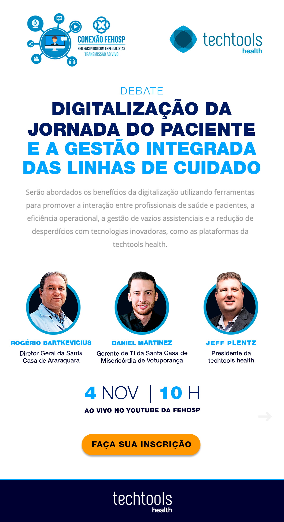 CONEXÃO FEHOSP COM TECHTOOLS - “DIGITALIZAÇÃO DA JORNADA DO PACIENTE E A GESTÃO INTEGRADA DA LINHA DE CUIDADOS”