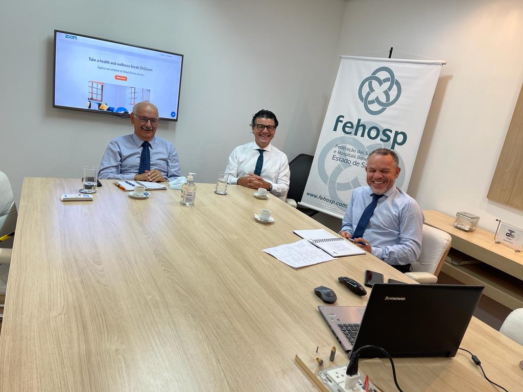 O presidente da Fehosp, Edson Rogatti, recebeu a visita do presidente da CMB (Confederação das Santas Casas e Hospitais e Entidades Filantrópicas), Mirocles Véras, e do diretor-geral, Mário César Homsi Bernardes.