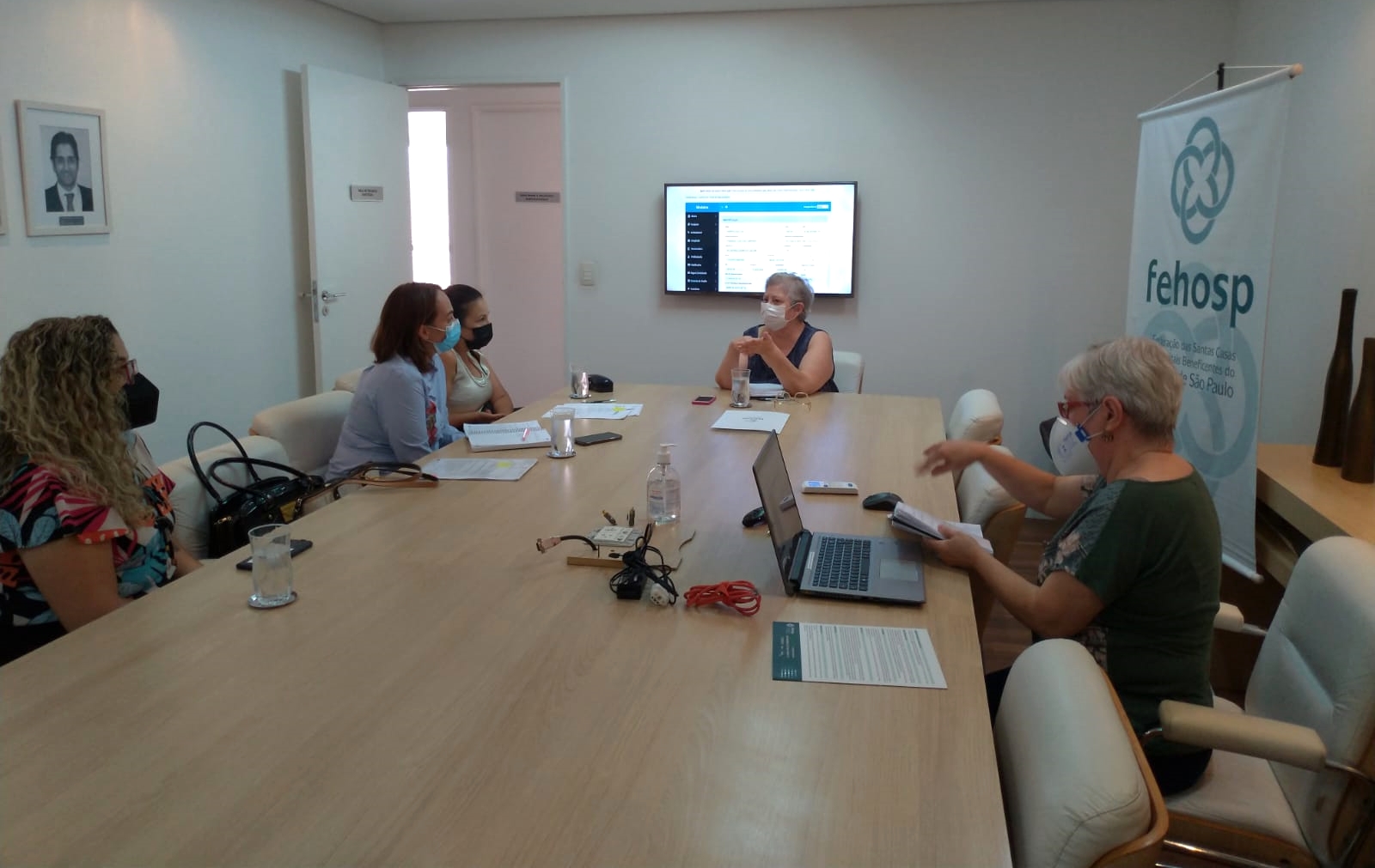 A reunião foi coordenada por Maria Fatima da Conceição, gerente técnica da Fehosp, e por Hermínia Martins, do departamento técnico da Federação.