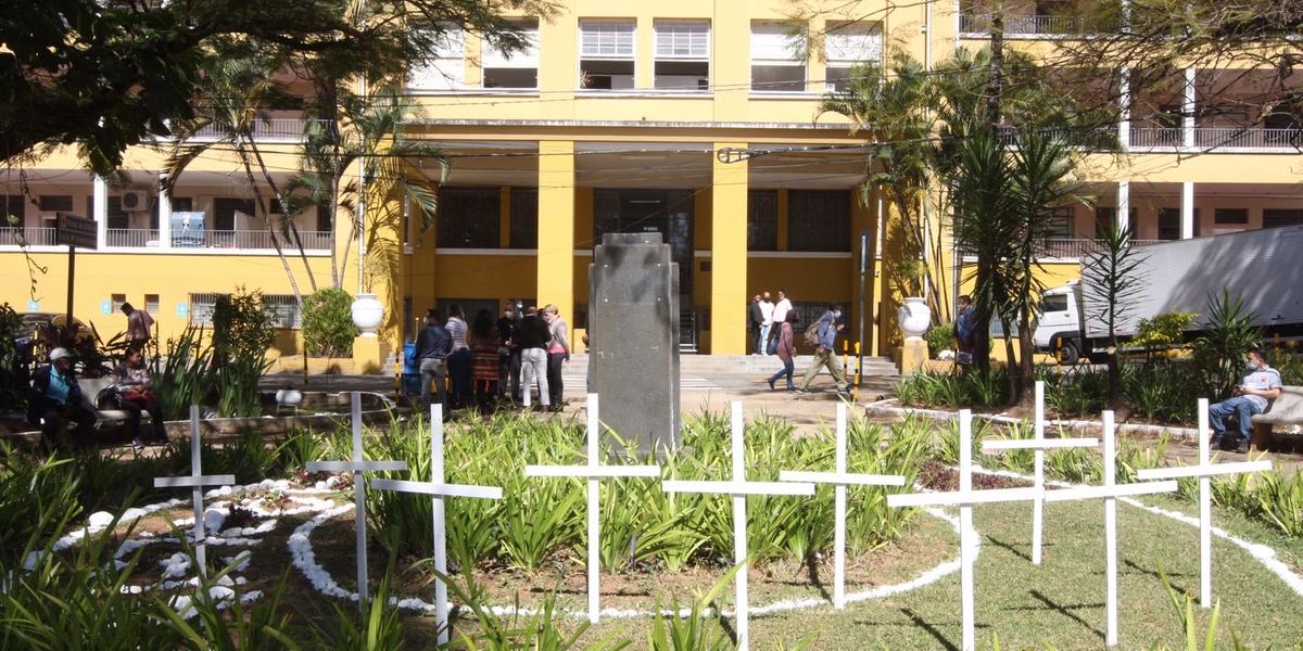Protesto realizado nesta segunda-feira (23), em Belo Horizonte, alerta para o risco de colapso em hospitais filantrópicos. Funcionários do Hospital da Baleia, na região Leste, se uniram para apoiar o manifesto nacional promovido pela Confederação das Santas Casas de Misericórdia, Hospitais e Entidades Filantrópicas (CMB).