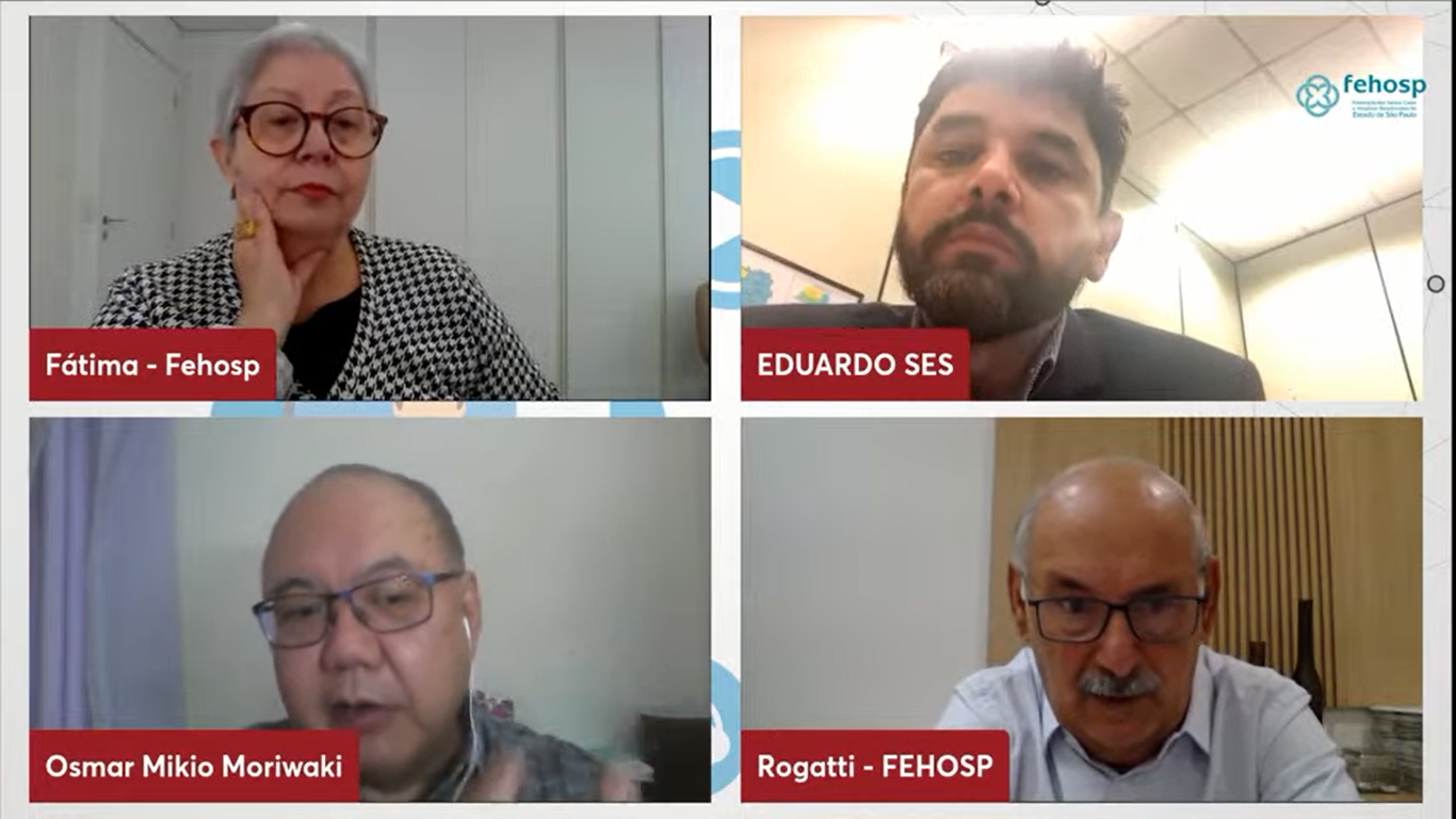 Nesta quinta-feira (2), o Conexão Fehosp realizou mais uma live abordando o tema ‘’Mutirão de cirurgias eletivas e o engajamento dos Hospitais Filantrópicos’’. A mediadora da live e gerente técnica da Fehosp, Maria Fátima da Conceição, recebeu Edson Rogatti, diretor-presidente da Fehosp, o secretário-executivo da Secretaria de Estado da Saúde de São Paulo, Eduardo Ribeiro Adriano, e Osmar Mikio Moriwaki, coordenador de saúde da Coordenadoria de Regiões de Saúde/SES/SP.