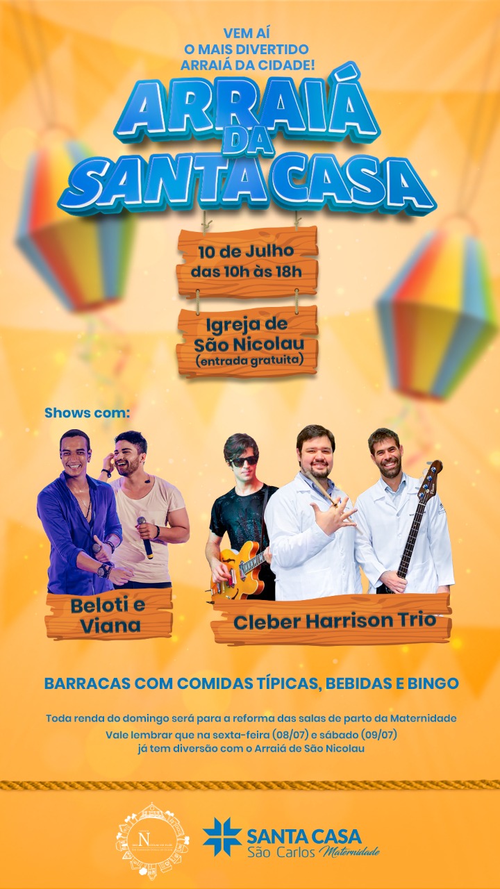 Leia mais em: https://www.saocarlosagora.com.br/cidade/arraia-da-santa-casa-arrecadara-recursos-para-a-maternidade/148092/