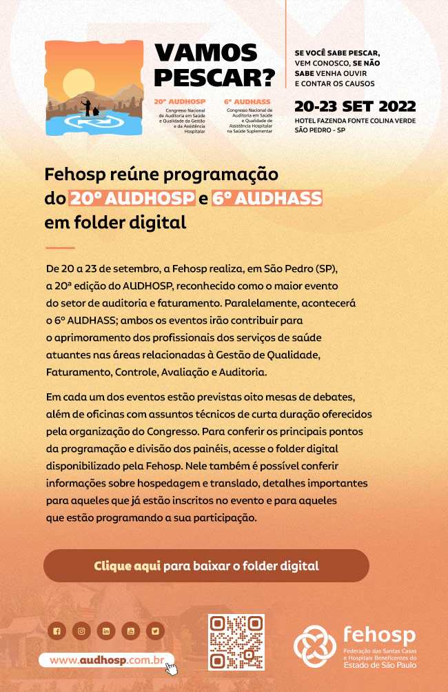 FEHOSP REÚNE PROGRAMAÇÃO DO 20º AUDHOSP E 6º AUDHASS EM FOLDER DIGITAL!