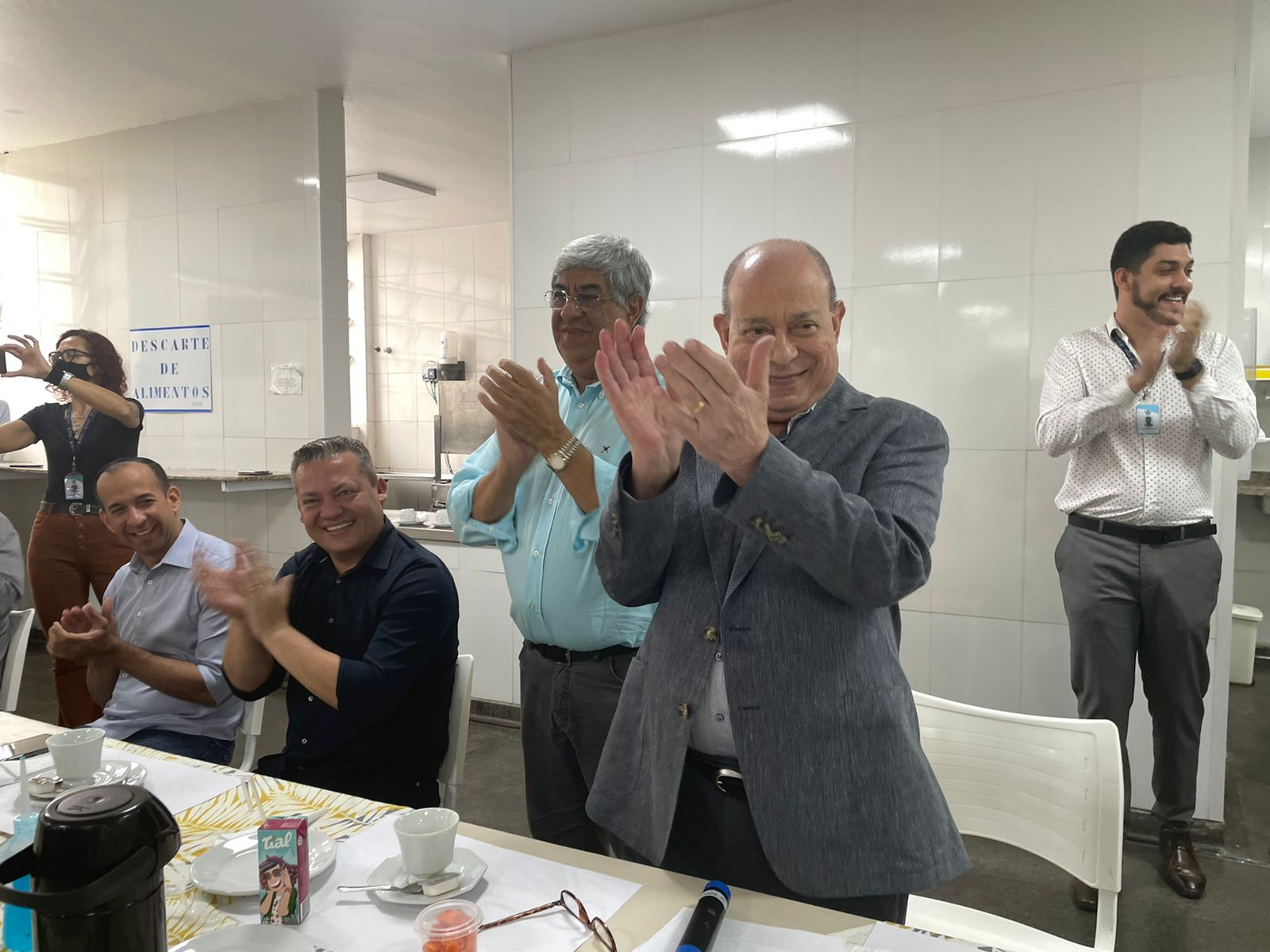 A edição do “Café com o Provedor” da Santa Casa de Santos que aconteceu nesta sexta, dia 26/8, teve um sabor diferente - o provedor Ariovaldo Feliciano, em meio à muita expectativa dos colaboradores, anunciou a liberação da primeira parcela do 13º salário, levando o público à euforia, que mal esperou o provedor terminar a frase “tá na conta”. A alegria tomou conta dos quase 200 funcionários presentes no refeitório, que compartilharam em primeira mão a notícia com os colegas de trabalho.