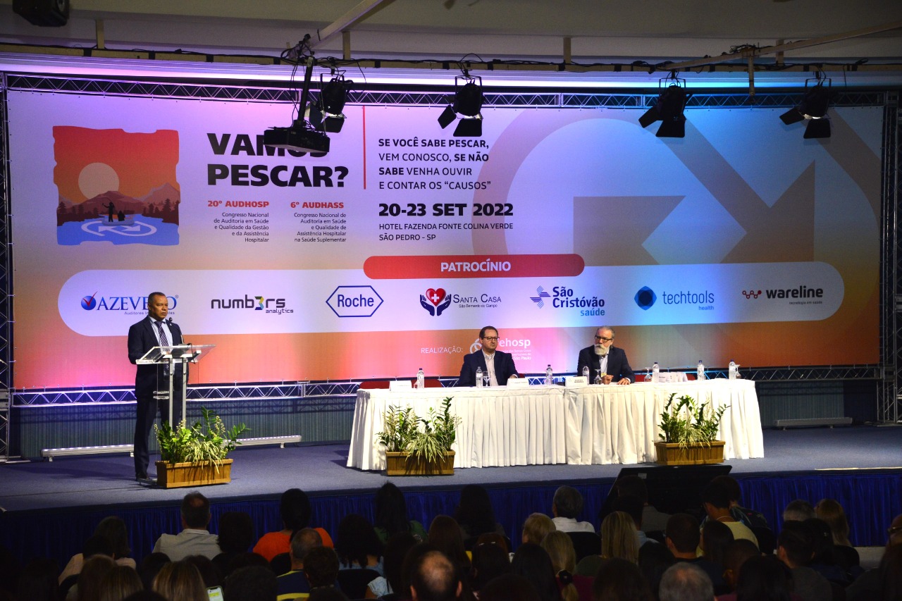 Após três dias de ensinamentos teóricos e apresentações de representantes do Ministério da Saúde, da secretaria estadual de Saúde e secretarias municipais, o AUDHOSP e AUDHASS encerraram a programação, nessa sexta-feira (23), de forma conjunta, e promoveram dois debates importantes para os profissionais de auditoria e faturamento das Santas Casas e hospitais filantrópicos. A mediação das mesas foi realizada por Rogério Medeiros, coordenador científico do AUDHASS e diretor da Santa Casa de Francisco Morato.