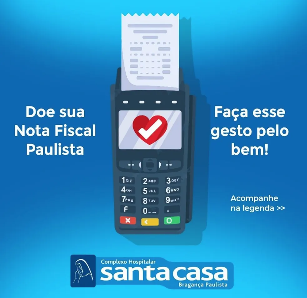 Você já configurou a doação das suas Notas Fiscais Eletrônicas para o Complexo Hospitalar Santa Casa Bragança Paulista? Sabia que você pode se tornar um doador digital sem gastar nada a mais?