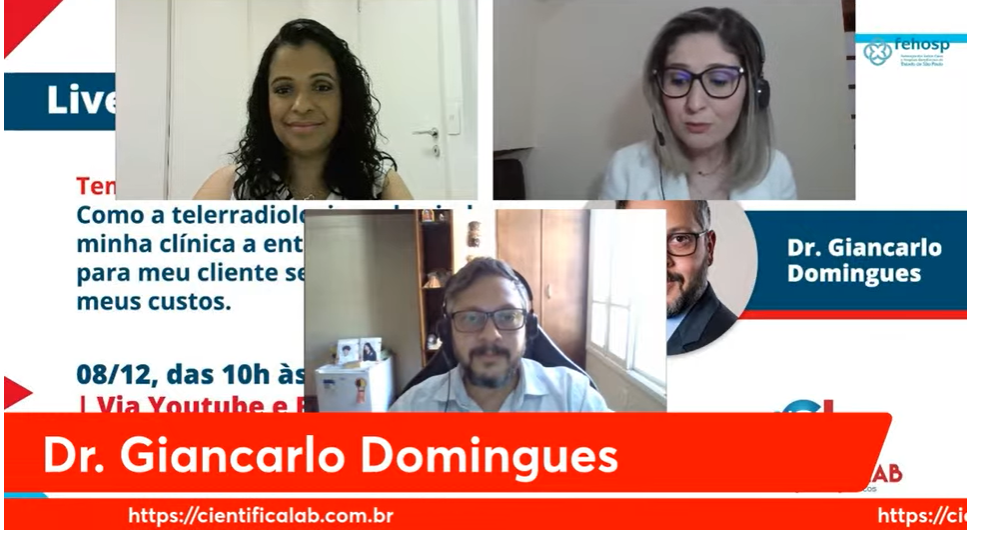 Durante o debate foi discutido a importância da telerradiologia, que surgiu com grande velocidade durante a pandemia da Covid-19, com os serviços de telemedicina, tele saúde, tele consulta e entre outros. Giancarlo passou a explicar o que é a telerradiologia, e disse: “na telerradiologia basicamente todos os exames de imagem podem ser laudados a distância, pois estes são exames que não precisam do médico ali presente, como por exemplo uma ultrassonografia, doppler, ecocardiograma, raio-x, mamografia, densitometria, ressonância magnética, PEC-CT, e etc.”